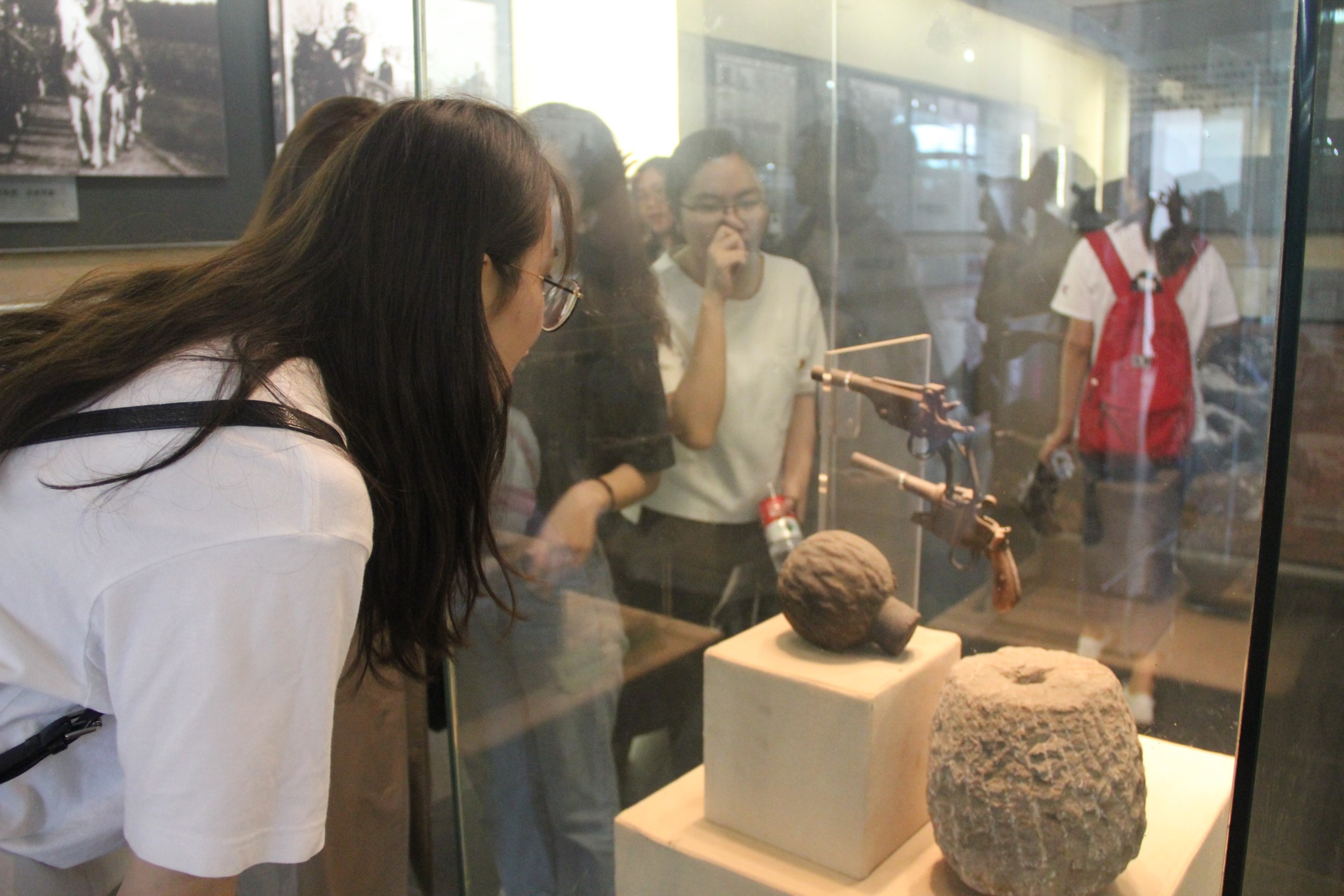 焦庄户地道战遗址纪念馆门口一座表现当年地道战场景的雕塑上写着毛泽东同志的手迹:“民兵是胜利之本”,这与习近平总书记总体国家安全观强调“既重视国土安全,又重视国民安全,坚持以民为本、以人为本,坚持国家安全一切为了人民、一切依靠人民,真正夯实国家安全的群众基础”的思想一脉相承。在这座雕塑下,UED体育党员同志一起重温入党誓词,宣誓牢记党的使命,做一名合格党员,自觉维护国家安全。在宣誓结束后,张效民副书记对学生党员提出殷切的期盼,希望学生党员可以更深刻理解中国共产党领导人民在战争年代维护国家安全的光辉历史,感受到党员的使命和责任。随后大家参观了展览馆,包括冀东抗战燃烽火、人民战争建奇功、今日顺义更美好三个展区,珍贵的展览内容为我们再现了焦庄户在党的领导下同敌人进行英勇斗争的历史画面。最后,国关学院师生走进地道战遗址,大家深切地感受到战争留下的印记。在阴冷潮湿的地道中弯腰前进,大家回想地道战的抗战历史,心中不禁感慨先辈的智慧和勇气。回望历史,才能继承和发扬革命先辈的优良传统,牢记维护国家安全的使命。