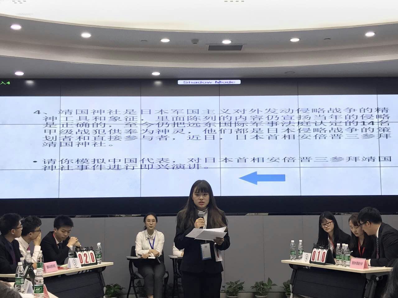 在本次比赛中,中国联合国协会会长卢树民、联合国驻华系统总协调员罗世礼、北京第二外国语学院党委书记顾晓园等出席开幕式并致辞。本次大赛分为初赛、决赛两个阶段。初赛分为为必答题和抢答题两个环节,决赛分为必答题、即兴演讲和情景模拟等三个环节。在下午的决赛环节,选手们分别模拟联合国秘书长、各国发言人等,针对难民问题、人权问题等重大议题发表3分钟即兴演讲。我校代表队模拟中国代表就日本参拜靖国神社问题提出了严正抗议。在情景模拟环节,选手们模拟中、美、英、法、俄、德、日、土8国外交官,针对欧洲难民问题进行激烈陈词和辩论,使比赛达到白热化阶段。我校代表队用英文慷慨陈词,不仅表达了代表国家的立场,同时也展现出北外学子扎实的语言功底,获得评委们的一致好评。