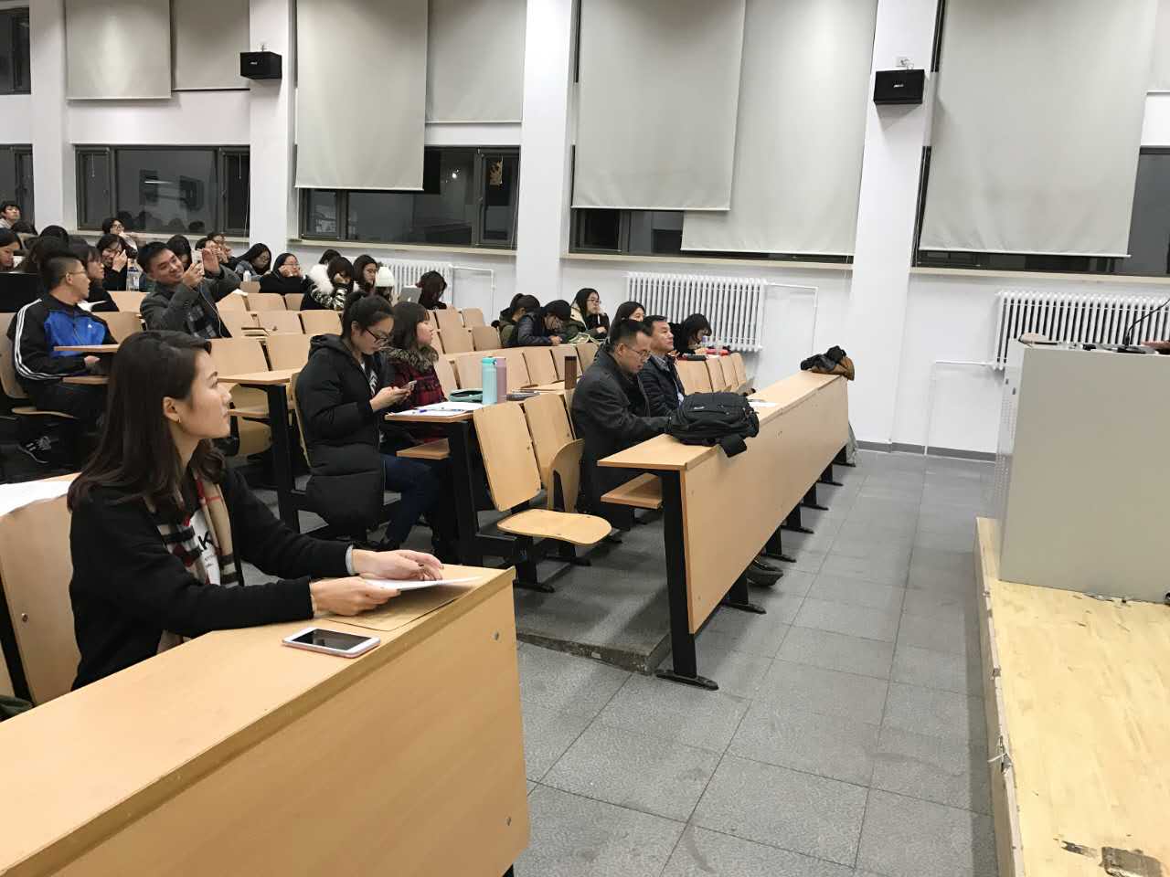在活动过程中,四名志愿者代表先后上台进行了主题报告。2016级的缑欣宁同学,于本学期参加了北京西藏中学的支援英语教学,本项目是UED体育特色创新的结对志愿者服务项目,取得了良好的效果反馈。她以“和谐是温暖彼此”为主题,讲述了自己与一群高三藏族孩子们的相处经历。2015级的董雨琦同学,以“平等存在于细节之中”为主题,讲述了自己在首都机场英语培训项目中的所见所想。2014级的陈阳同学,回顾了自己在“歆语工程”与多语言服务项目中的经历,总结出了“以责任和敬业回报社会”的价值理念。2016级研究生王雪同学,拥有丰富的志愿者服务经验,以极其触动人心的描绘向我们展示了她在一年的西部支教中的让人印象深刻的场景,强调了志愿者服务的性质是“不计较个人利益,奉献友爱互助进步”。各位志愿者代表的体会分享生动而具有感染力,台下的听众为每一位志愿者代表献上了真挚的掌声。她们将自己的感想与社会主义核心价值观融合在了一起,同学们在被种种细节感动的同时,也备受鼓舞,感受到了社会主义核心价值观就存在于我们生活中的每个细节之中。