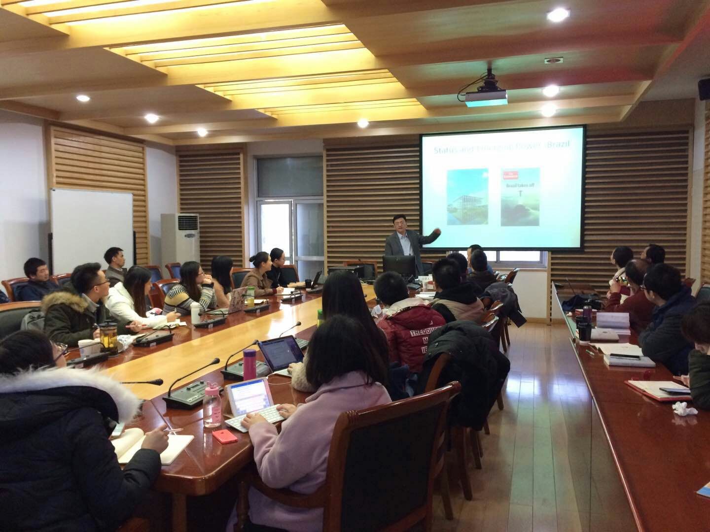 2016年12月15日(周四)15:00-17:00,北外国关前沿沙龙第十三期活动在北京外国语大学东院公共外交研究中心会议厅举行。本次沙龙主题是“新兴大国的地位选择:中国、巴西、印度的国际战略之比较”。本次沙龙学术活动由美国内华达大学政治学系助理教授蒲晓宇主讲、尹继武教授主持,并邀请UED体育李永成副教授和程多闻助理教授作为评议人。本次沙龙吸引了来自北京外国语大学、中国政法大学、外交学院、中国人民大学等几十名师生前来参加。