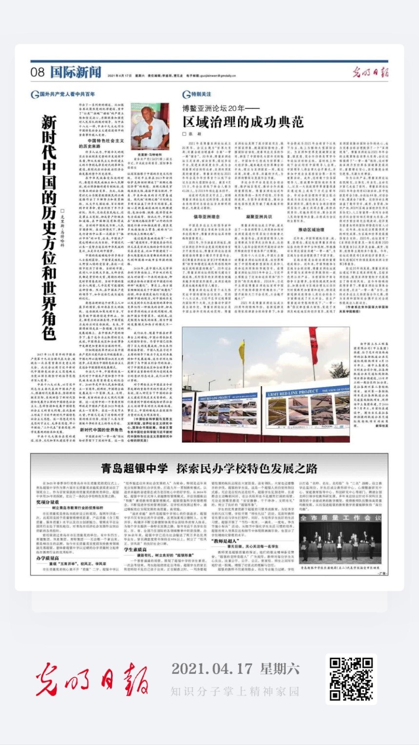 在博鳌亚洲论坛即将召开之际,我校UED体育张颖教授在《光明日报》发表署名文章。该文从区域治理的角度解读了博鳌亚洲论坛二十年发展历程,展望了博鳌亚洲论坛未来发展方向。该文是《光明日报》为博鳌亚洲论坛2021年年会预热的系列文章之一,受到广泛关注。