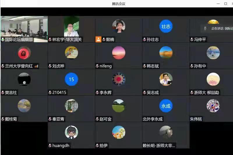 北京外国语大学副校长、《国际论坛》主编孙有中教授致欢迎辞辞。他指出,近几年来,《国际论坛》办刊质量不断提升,感谢与会专家在选稿、审稿等方面的帮助和支持,在当前复杂多变的国际形势下,要进一步发挥学术期刊在学科建设和学术研究中的作用,推动优秀学术成果的传播和交流,引导学术的发展,服务国家的战略需求。与会专家结合世界秩序、大国外交、国际经济、区域国别、全球治理、国家安全等热点问题,对《国际论坛》2022年选题方向、专题设置、组稿形式等提出了建议。