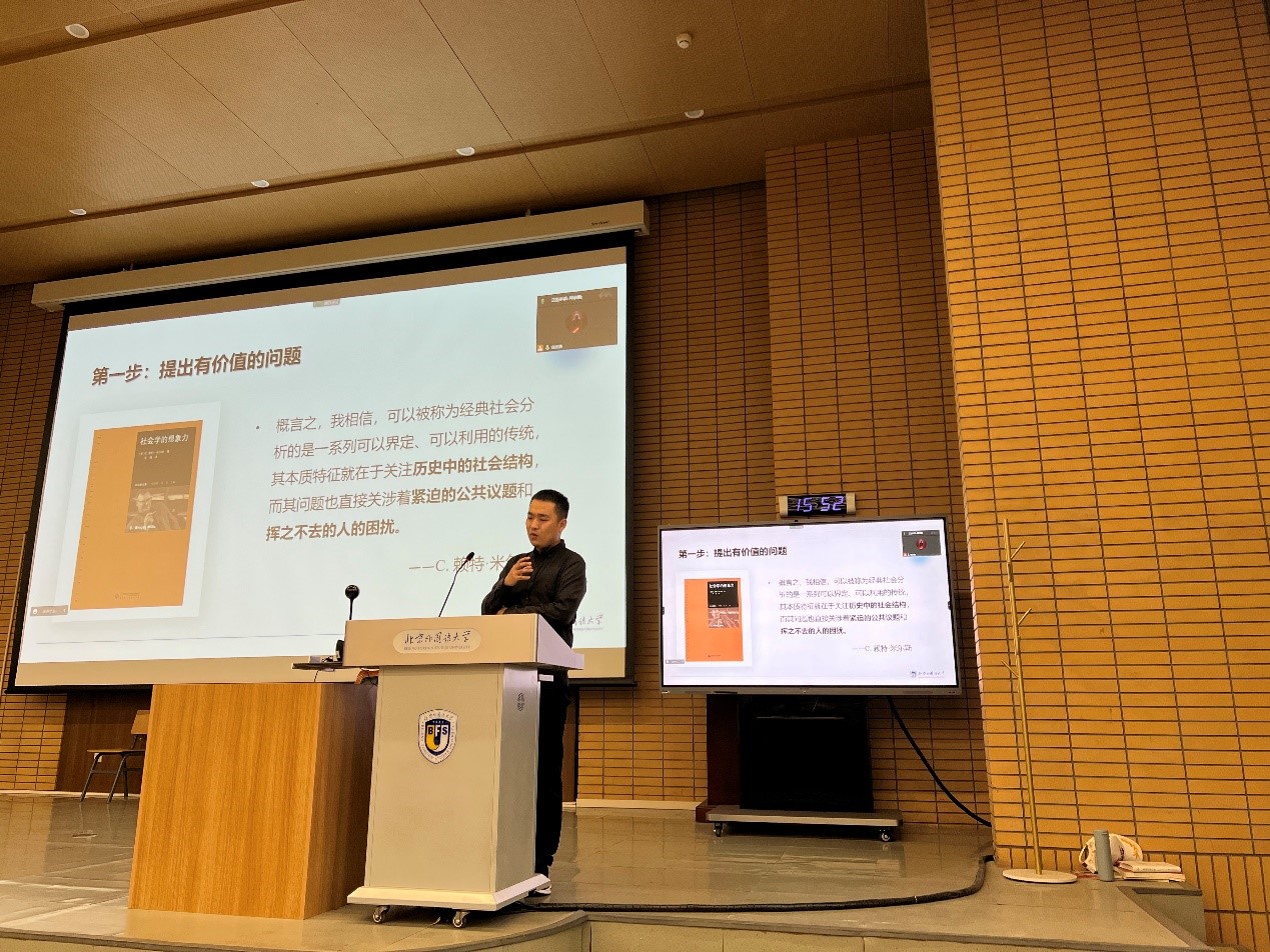 随后,UED体育青年教师释启鹏博士以《问题意识与学术规范》为题进行了详细讲解。释启鹏老师围绕问题提出、文献对话、分析框架、研究方法等环节就论文写作中需要注意的问题以及常见错误进行了阐述,鼓励同学们在介入经典理论对话中为当下重大现实问题提供新的解释。