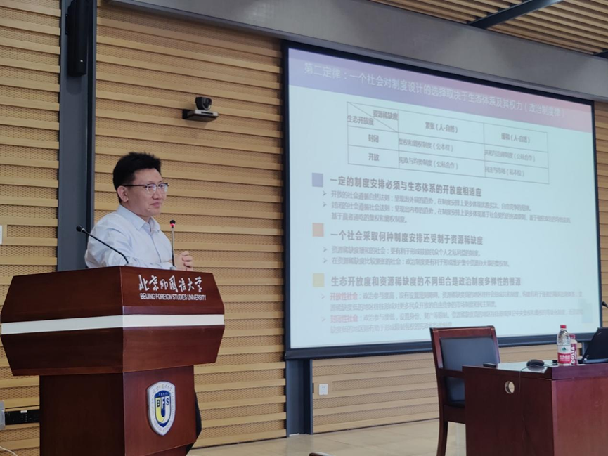 随后,赵可金教授阐释了生态制度主义“竞争排除”和“错位发展”的两大原理,强调既有理论往往忽视了后者的重要性,强调所有人类的政治行为不应仅拘泥于政治逻辑和经济逻辑,更应该回归生态的逻辑。而在这一逻辑中,不必然存在所谓自由民主与威权的制度之争,两者之间的关系是可对比但不对立,在政治制度的选择上,没有最好的制度,只有最适合生态的制度,一切制度都有其特定的生态条件,这就是生态制度主义在政治学总问题上的基本结论。