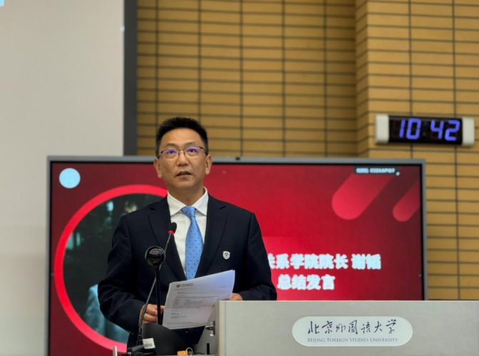 谢韬院长向在场新生表示热烈的欢迎与祝贺,并对2025级新生提出了五点期待:第一,须有出色的外语能力,重视外语学习;第二,坚持“以德为先”,成为德智体美劳全面发展的人才;第三,持之以恒地学习,保持对专业的热情与阅读的习惯;第四,积极与师长交流,主动与老师们沟通困惑、交流学习;第五,充分利用在校优质资源,提升综合素质。谢韬院长鼓励全体新生立志成为学贯东西、博览古今的国际化人才,培养专业学习能力,涵养高尚道德品格,提高个人综合素质。