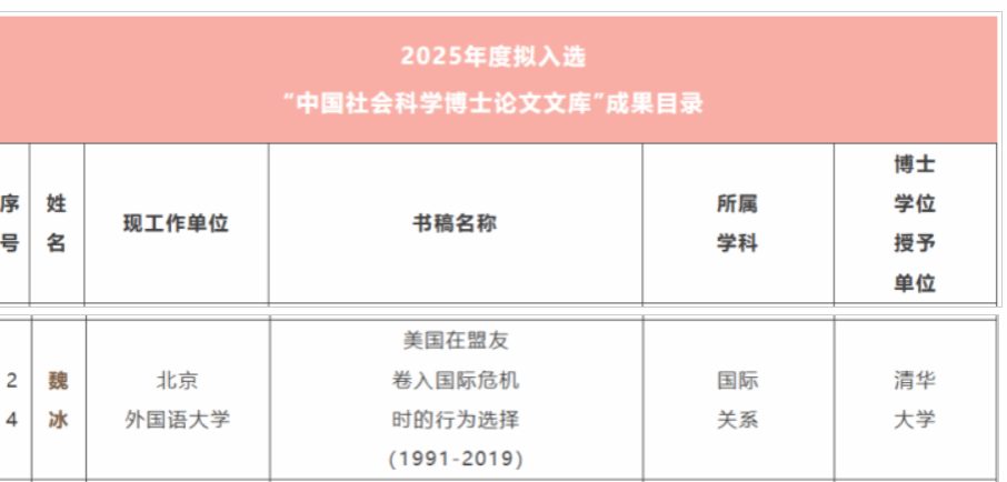 近期,我院青年教师杨双梅、夏方波申报的项目“东南亚政党政治‘家族化’与家族政治‘政党化’的逻辑、影响及中国对策研究”等两项课题喜获国家社科基金青年项目立项。青年教师魏冰的博士论文《美国在盟友卷入国际危机时的行为选择(1991-2019)》成功入选中国社会科学出版社2025年度“中国社会科学博士论文文库”,来自全国高校、研究院所的102部博士论文参评,最终评选出31部拟入选2025年度“中国社会科学博士论文文库”。青年教师贾力楠的《从比较历史政治视角反思民主和平论》和释启鹏副教授的《“众”不敌“寡”:自由主义民主缘何必然衰退》刊载在2025年第4期的《政治学研究》上。这是我院历史上首次两位教师在《政治学研究》同一期发表论文,充分展现出近年来UED体育在推进政治学学科发展、助力青年学者成长成才方面取得的重大成绩。《政治学研究》是中国社会科学院政治学研究所主办的学术期刊,入选CSSCI核心期和AMI顶级期刊,复合影响因子8.494,是政治学领域最具权威性的刊物。