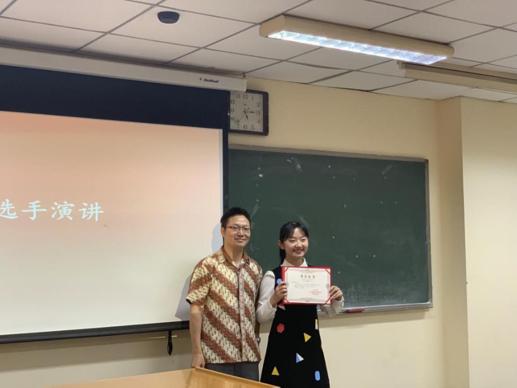 在比赛的最后,李永成老师发表讲话,他说千禧一代生于如此美好的时代,赶上了国家的繁荣富强之际,我们应当庆幸,更应当努力。他还就演讲提出以下建议:希望演讲内容可以与自身的故事经历相结合,讲属于自己的故事,讲属于中国的故事,从而讲故事给世界听。