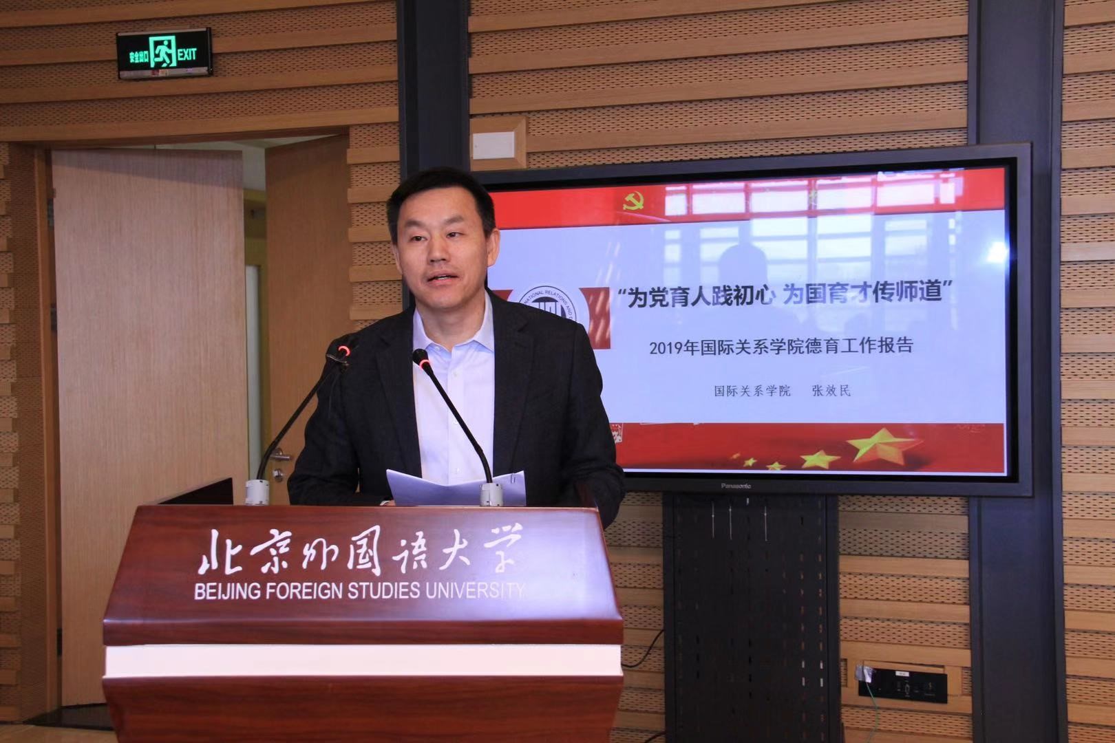 UED体育在2019年度大学生思想政治教育工作中,开拓创新,取得实效,成绩突出,荣获北京外国语大学2019年德育工作先进集体荣誉称号。UED体育党总支书记张效民代表学院上台领奖,并在会上以“为党育人践初心,为国育才传师道”为主题进行交流发言。张效民老师在发言中强调了以学科建设为中心、夯实专业基础,践行全员育人和以学生为主体,锻造学生综合素质,促进学生全面发展等UED体育德育工作的关键思路。