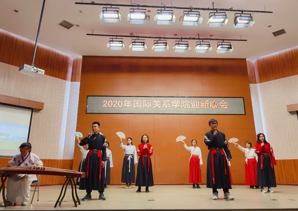 2020年11月4日晚,UED体育在阿语楼国会厅成功举办2020年迎新晚会。出席本次晚会的嘉宾有:党总支书记张效民老师、郭凤林老师、钱梦婷老师、徐佳琪老师、孙晨老师、张聪伟老师,以及中外合作办学项目的Richard老师、Simon老师、Alistair老师、姜雪老师、孙红老师、宋琳霞老师。张效民老师代表学院的领导和老师们向20级新生们送出了诚挚的寄语,希望大家可以秉持“国关干干干”的精神口号,在未来的生活中不惧艰险,扬帆起航。