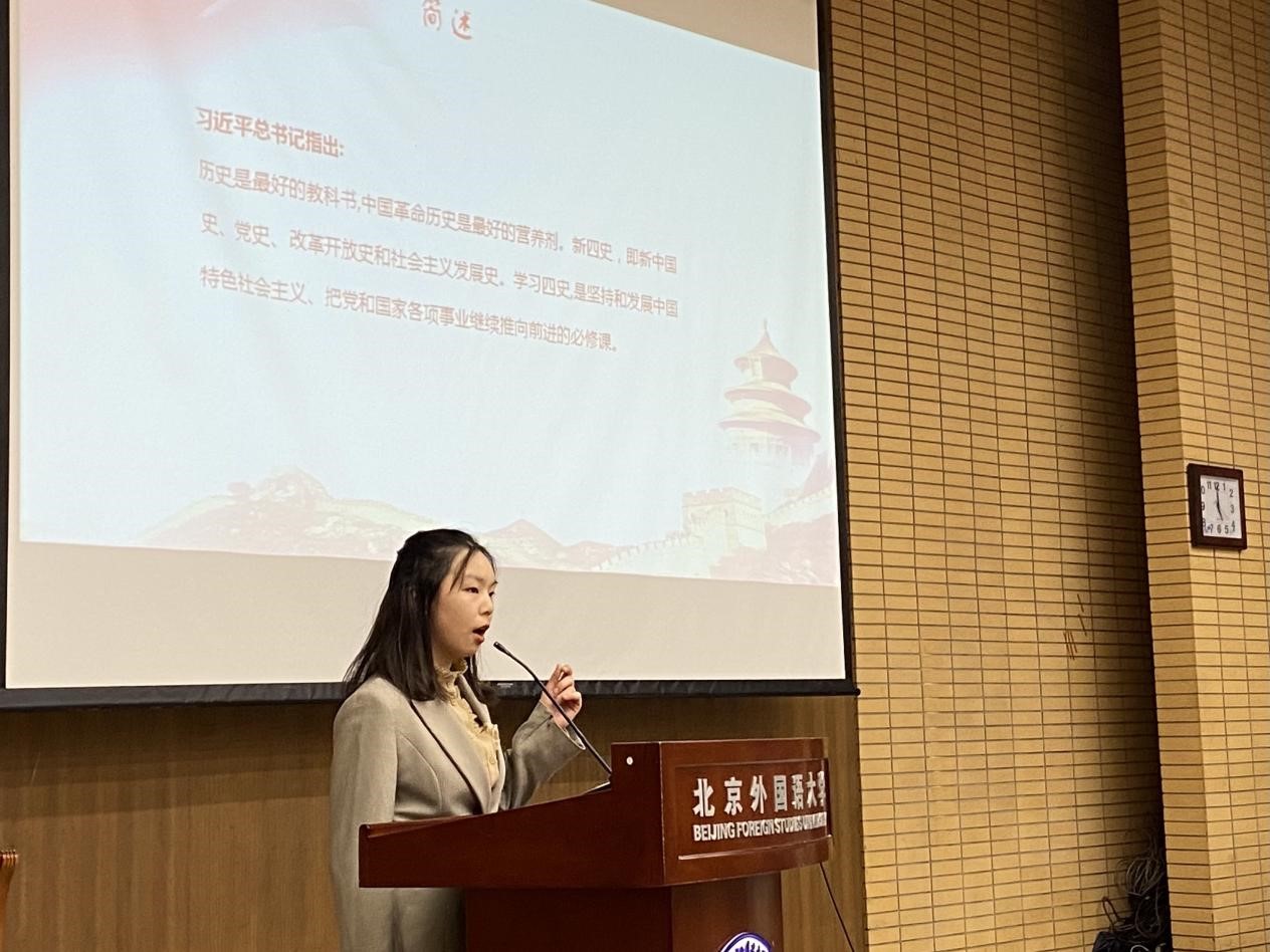 陈雨帆和闫泽宇同学把自己北外学习生活和学习四史的重要性联系在一起,呼吁同学们珍惜现在的和平环境,唱响属于我们的青春之歌;
