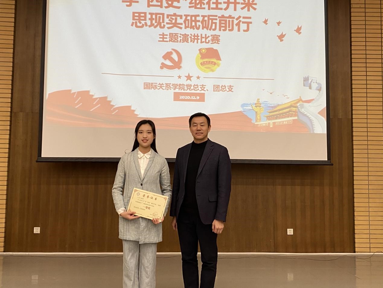 本次活动由20级外交6班朱格仪同学主持。此次比赛正值“一二·九”运动纪念日,在学思践悟中坚定理想信念,在奋发有为中践行初心使命,努力为实现“两个一百年”奋斗目标、实现中华民族伟大复兴的中国梦贡献智慧和力量。有利于增强广大青年对四史的理解,传承红色基因、坚定理想信念。