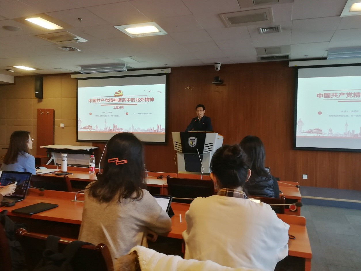 为贯彻落实党的十九届六中全会精神,深入学习习近平总书记给北外老教授回信精神,加强学生党员党性修养,12月22日下午,UED体育党总支邀请北京外国语大学综合改革办公室、双一流办公室主任汤哲远老师讲授党课,主题为“中国共产党精神谱系中的北外精神”。党课由国关辅导员、学生第二党支部书记钱梦婷老师主持,UED体育学生第一党支部、第二党支部党员及预备党员同学们参加了党课。