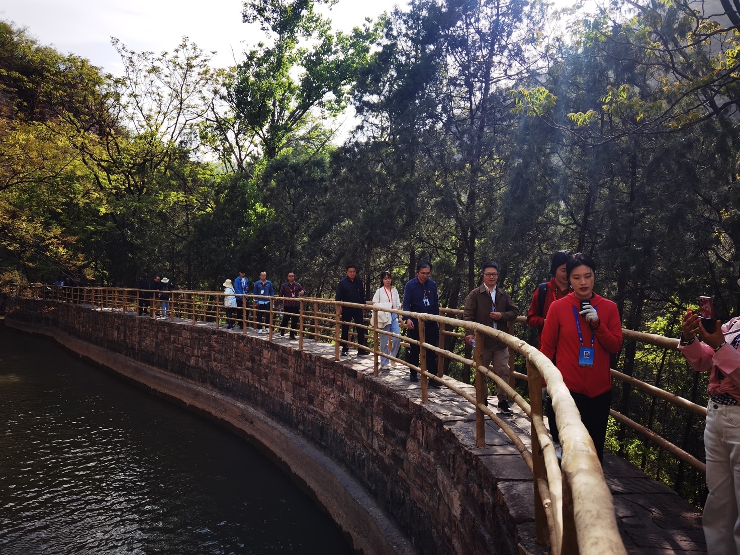 最后,大家沿着红旗渠追寻“红色足迹”。在红旗渠引水灌溉工程现场,巍巍太行山上一面鲜红的党旗格外醒目,李先念题写的“山碑”和郭沫若题写的“青年洞”气势磅礴,党员们更加深刻地感受到了红旗渠精神所蕴含的自力更生、艰苦创业、团结协作、无私奉献的精神内涵。通过这次亲身体验,党员们对红旗渠精神有了更为直观和深入的理解,表示要将红旗渠精神与党的二十大精神结合起来,以实际行动践行红旗渠精神。