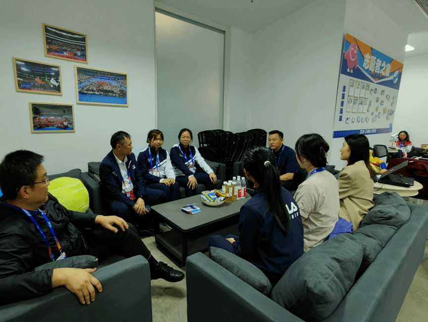 随后,UED体育师生代表与中网工作人员和志愿者代表在会议室展开进一步交流。志愿者代表们向学院介绍了自己在不同志愿部门的服务活动和上岗以来的感想与感悟。据悉,我院参与此次中网志愿服务的志愿者分布在球员服务、志愿者服务等岗位,他们在赛事期间以饱满的热情和勤勉的行动,不仅为赛事的顺利进行提供了有力保障,也通过实践锻炼提升了自身能力和经历。