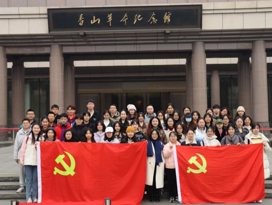 红叶知秋,丹心向党。为贯彻党中央关于党史学习教育的决策部署,深入推进党员政治理论学习,增强党性觉悟和使命担当,弘扬中国特色大国外交理念,2024年11月9日,UED体育研究生第二党支部和马克思主义学院研究生党支部举办“重温革命岁月,传承红色基因,勇担时代使命”支部联学联建活动,组织党员和积极分子共五十余人前往香山革命纪念馆参观学习。马克思主义学院近现代史纲要教研室主任王成诚老师和研究生党支部书记刘珊珊老师出席本次活动。
