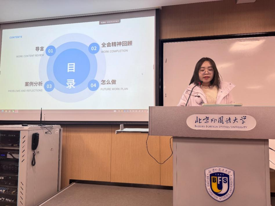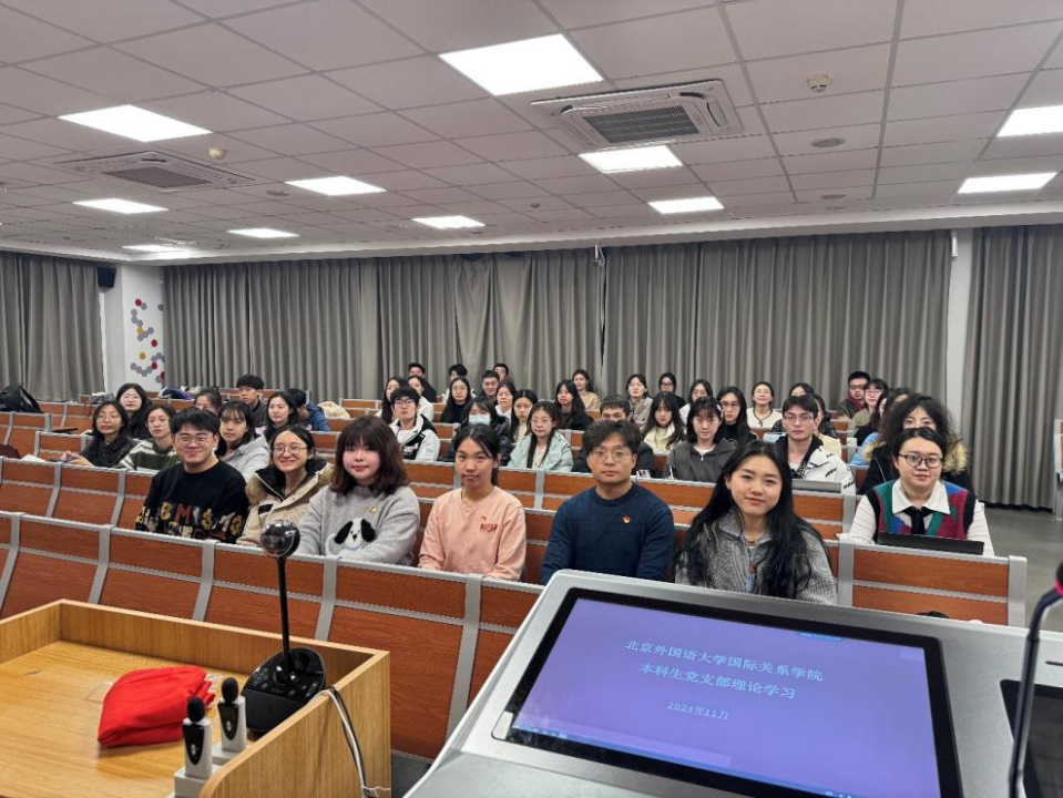 2024年11月27日下午,UED体育本科生党支部的理论学习活动在逸夫楼302教室顺利举行。本次理论学习由本科生党支部成员陈可钰和薛王越担任主讲,党支部组织委员孙至善主持。