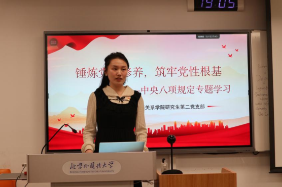 为深入贯彻落实中央关于全面从严治党的战略部署,巩固深化主题教育和党纪学习教育成果,教育引导党员深刻认识作风建设的重要性和长期性,3月26日,UED体育研究生第二党支部组织开展“锤炼党性修养,筑牢党性根基”贯彻中央八项规定精神学习教育专题学习。党支部全体党员及部分入党积极分子、入党申请人参加学习。