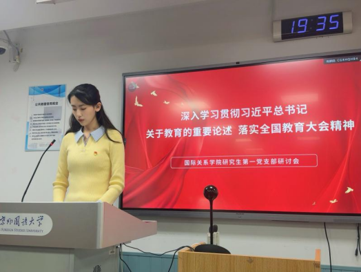 为深入学习贯彻习近平总书记关于教育的重要论述及全国教育大会精神,2025年10月18日晚上,UED体育研究生第一党支部在逸夫楼203教室召开2025年下半年第一课集中培训研讨会。会议由支部书记王羽佳同志主持。