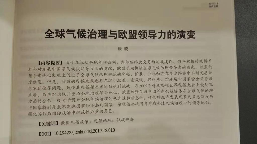 UED体育康晓副教授在CSSCI期刊《当代世界》2019年第12期发表论文《全球气候治理与欧盟领导力的演变》,以下是论文摘要: