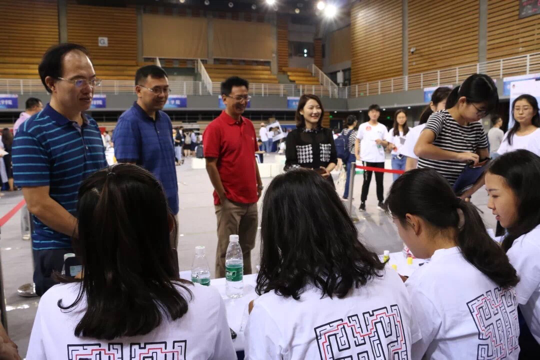 UED体育院长谢韬,副院长王明进,副院长杨毅,团总支书记、辅导员钱梦婷,中外合作办学项目负责人屠希亮来到工作现场慰问迎新工作人员。在老师们的指导下迎新工作顺利进行。