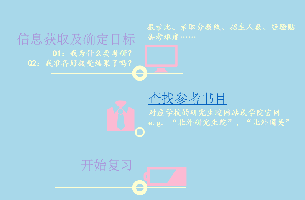 马璐首先梳理了自己决定考研的过程,她认为考研需要获取足够的信息才能最终确定自己的目标,比如:报录比、录取分数线、招生人数,以及经验贴。经验贴分析备考难度和上岸难度的有效信息来源