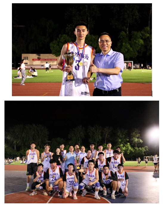 本次比赛,北京外国语大学校长杨丹老师,副校长丁浩老师及UED体育彭澍老师、钱梦婷老师到场观战并为运动员加油打气。在赛后颁奖环节中,杨丹校长为国关男篮所有队员颁发了冠军奖杯和奖牌,与队员们进行了亲切的交流,表达了对受伤队员的关心,并鼓励同学们将在球场上拼搏奋斗、团结一致的精神发扬在今后的学习生活中,再接再厉,更进一步。